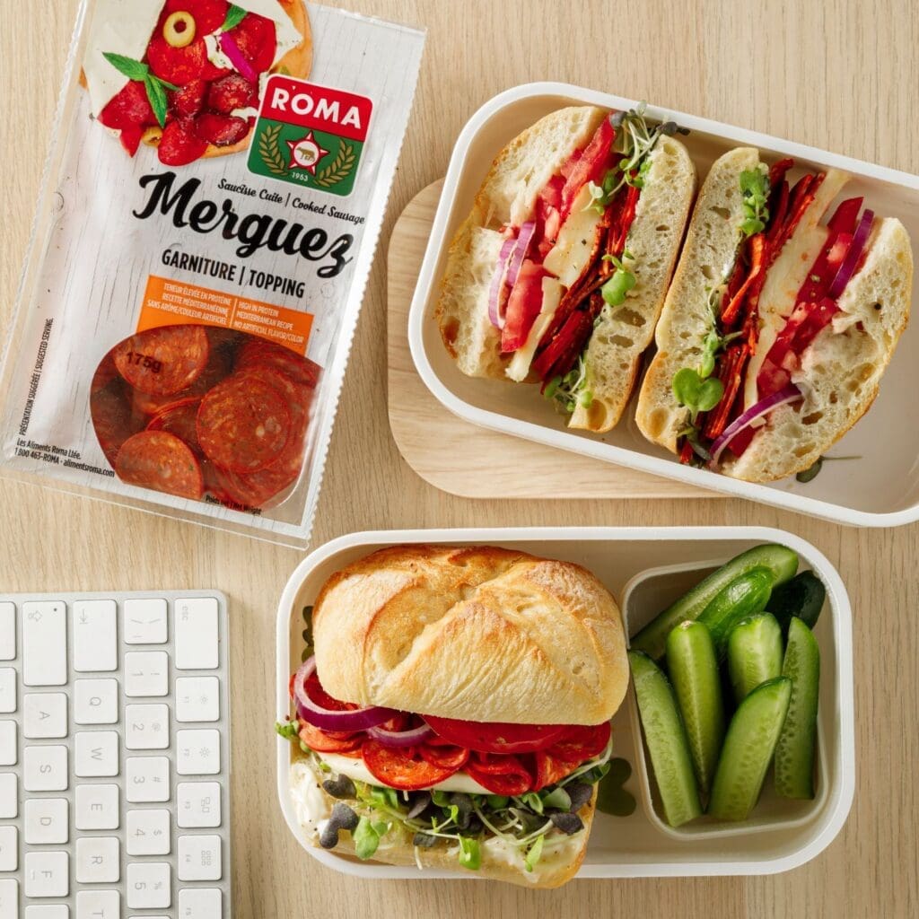 Roma a tout ce qu’il vous faut pour faire changement du traditionnel sandwich au jambon sur pain blanc. Les saucisses cuites tranchées et le capicollo sont deux de nos produits chouchou : dans la boîte à lunch et le bento, ces charcuteries sont des protéines de choix pour l’heure du lunch.