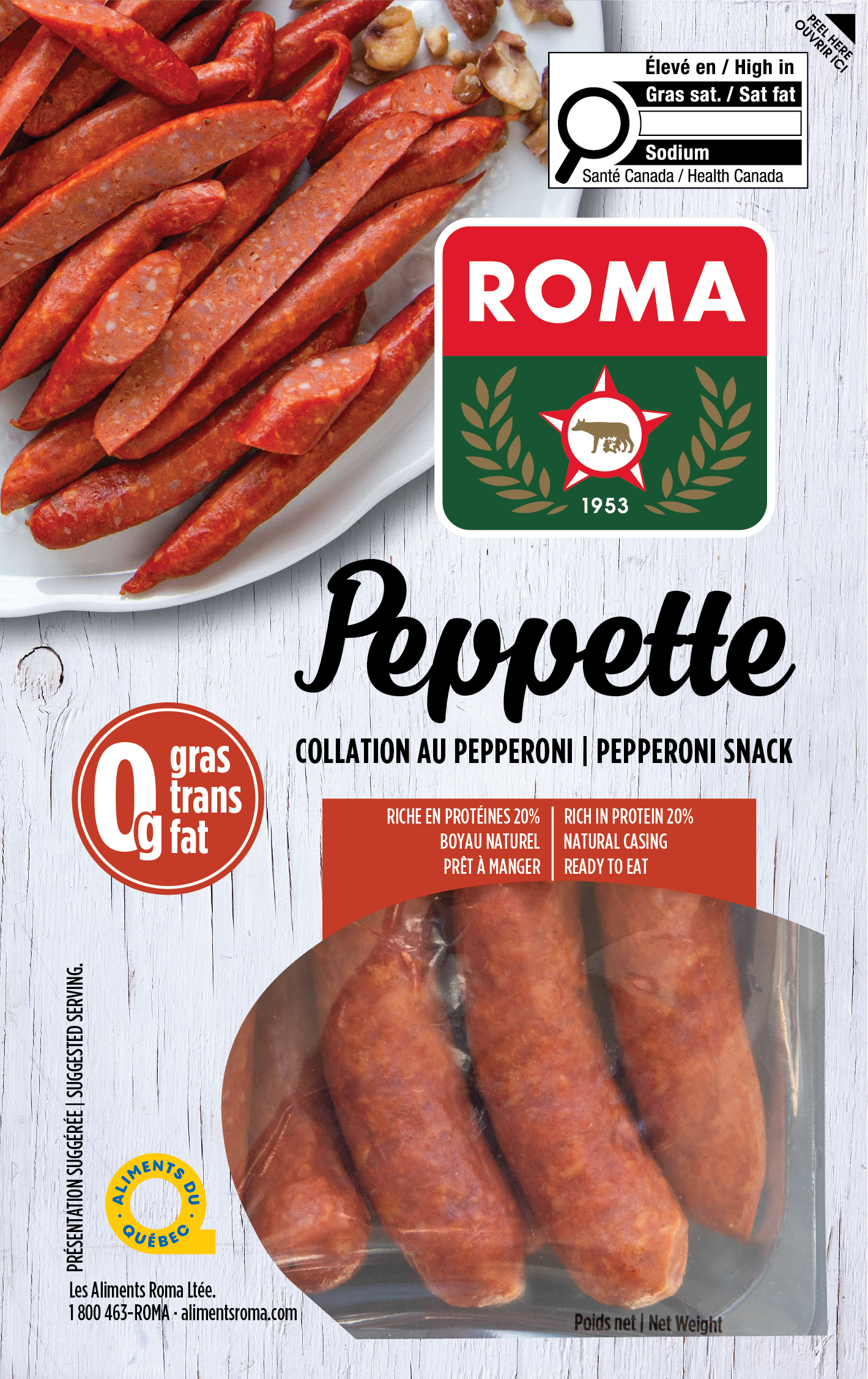 Savourez le Pepperoni Caserta en bâton piquant de Roma, la toute première recette de pepperoni cuit fabriquée au Québec avec des viandes de première qualité et une touche de saveur fumée et epicée. Tranchez-le à votre goût! Pratique et savoureux, ce pepperoni en bâton de 200 g s’adapte à toutes vos recettes. Que ce soit pour vous offrir une soirée pizza à la maison, déguster des salades fraîches, de délicieux plats de pâtes ou simplement grignoter entre les repas… élevez l’expérience culinaire de vos papilles avec le Pepperoni Caserta de Roma, la marque de pepperoni no 1 au Canada!*