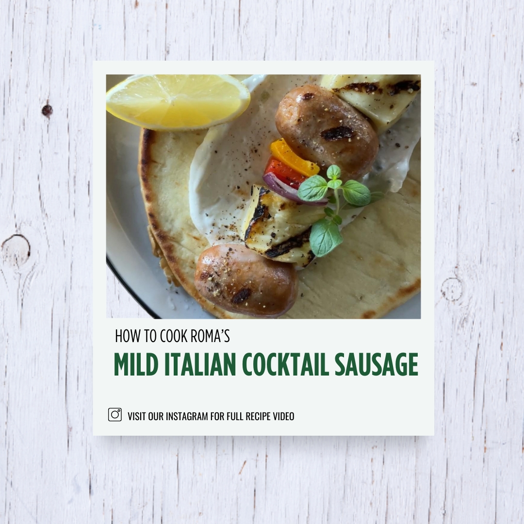 Roma’s mild Italian cocktail sausages are not only perfect for making your own kebabs, but they also let you reinvent your favourite sausage dishes. Use them to make bacon-wrapped mini sausages or paninis quickly to be devoured. They’ll be a sure-fire hit as a garnish on Italian poutine or for flavour-packed papillote meals. Don’t hesitate to cook them differently for every occasion!