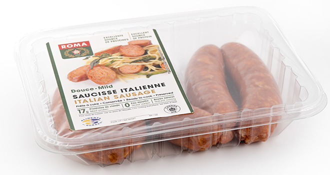 This packaging shows off our home made style sausage quality. Having no water added, no animal by-products and using all natural ingredients, these juicy items are some of the very few that can be sold in such fashion on the Canadian market.