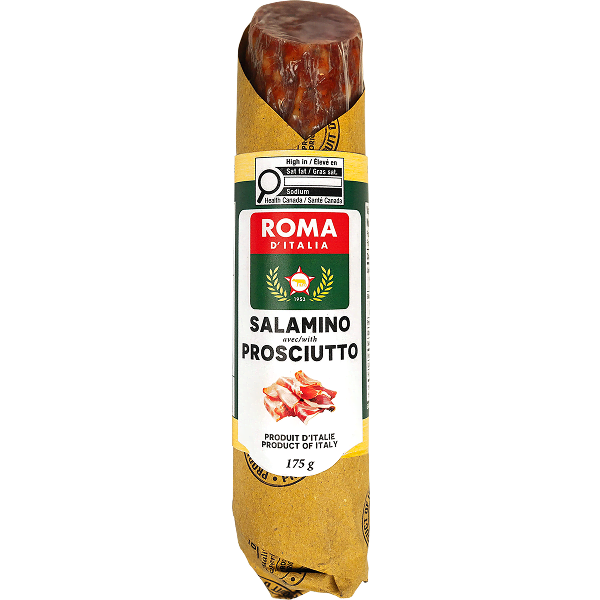 Savor the authentic taste of Italy in every bite with Roma D’Italia’s Salamino Prosciutto.